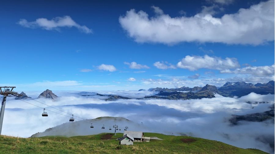 Büroausflug 2025: Mit der steilsten Standseilbahn der Welt auf den Stoos von grau zu blau