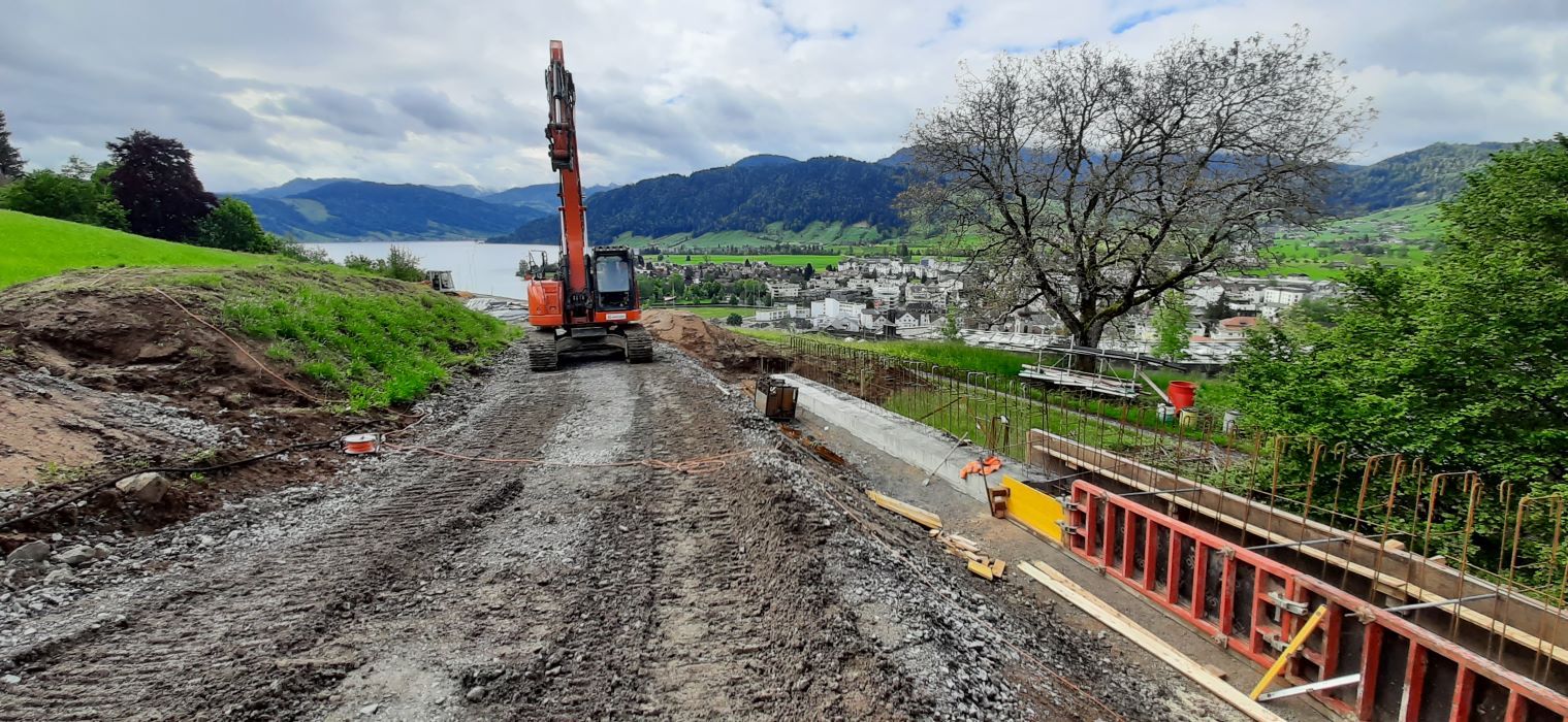 Im Gebiet Schönwart in Unterägeri wird gebaut. Auf der Grundlage eines Überbauungsprojektes der Swiss Property AG wurde eine neue Erschliessung geplant. Vom bereits erschlossenen Teil Schönwart Nord wird talabwärts eine neue Strasse gebaut. Entlang der Grenze zum Nachbargrundstück ist eine ca. 23 m lange talseitige Winkelstützmauer vorgesehen.