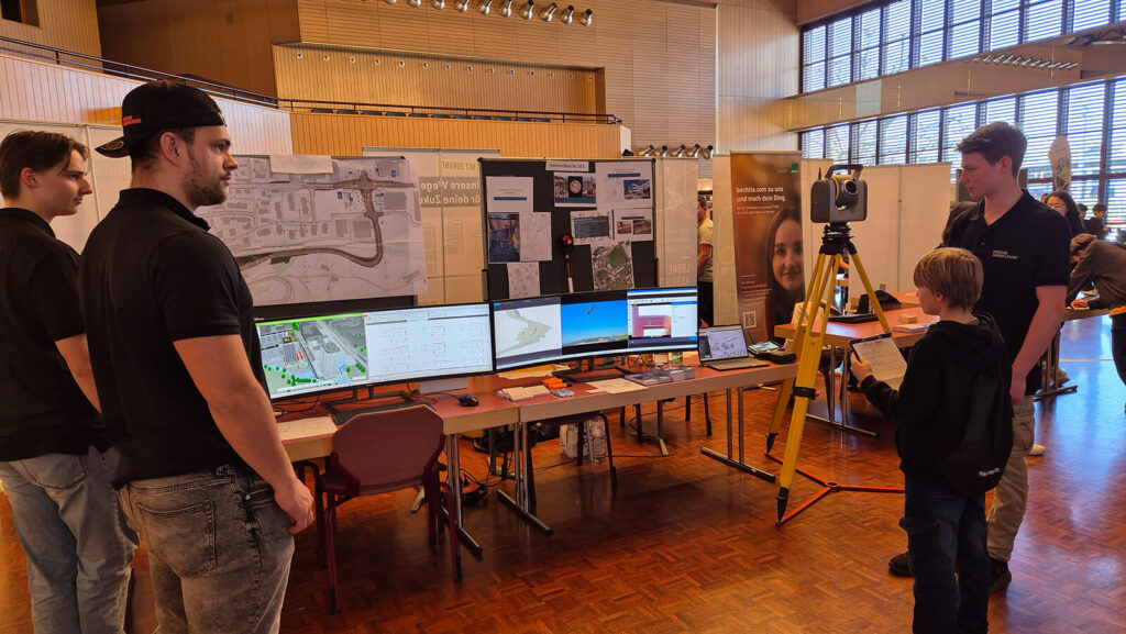 Am 7. & 8. April nutzten wir die Gelegenheit, an der Berufsschau in Risch Rotkreuz teilzunehmen. Dabei gaben wir den Schülerinnen und Schülern spannende Einblicke in die Berufe Geomatiker*in EFZ und Zeichner*in EFZ Ingenieurbau. An rund 600 Besuchern präsentierten wir unser Wissen und die vielseitigen Karrieremöglichkeiten in diesen beiden Berufsfeldern.