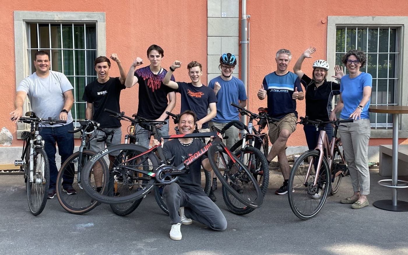 Trotz verzögertem Sommer sind bei uns seit anfangs Juni ein paar Unentwegte bei der bike to work Challenge 2024 dabei und absolvieren den Arbeitsweg grösstenteils mit dem Velo. Insgesamt 3 Viererteams überbieten sich gegenseitig beim Kilometersammeln. Aktuell hat das Team «Geovelo PBU» mit insgesamt 1103 Kilometern und 62 Velotagen die Nase vorne. Gratulation! Am Schluss gab es nach dem Fotoshooting ein Znüni, um die verbrannten Kalorien zu ersetzen.